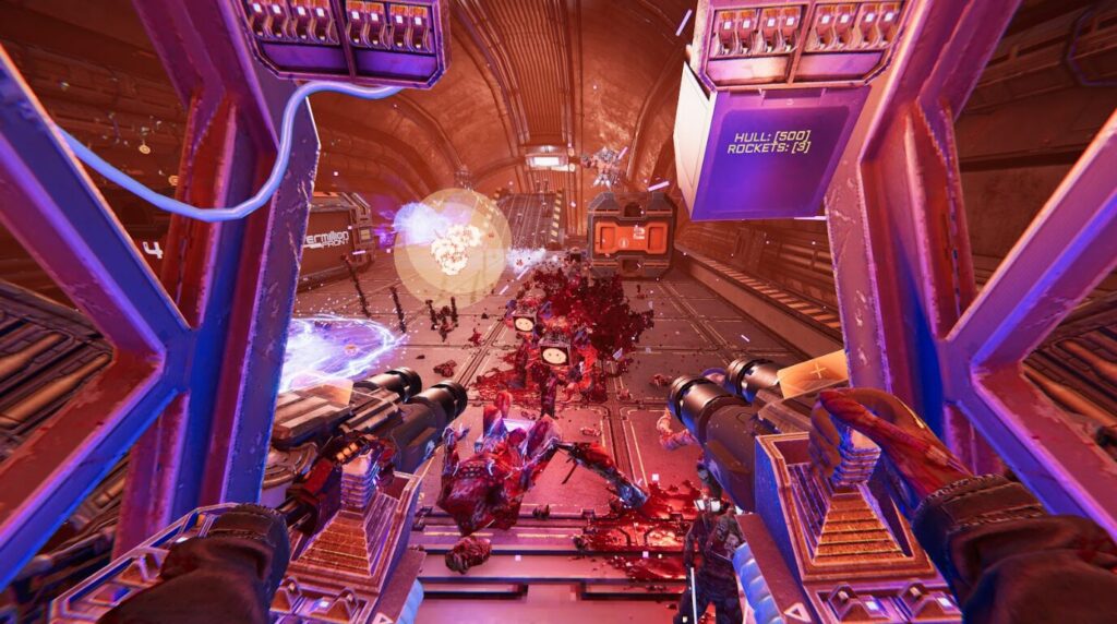 本作は、Apogeeが世に放つ最も野蛮なFPSと謳われている。腕に隠されたロケット、脚から伸びるチェーンソーといった特徴的な武装で敵をスライドしながら切り刻む、爽快感あふれるアクションが特徴だ。